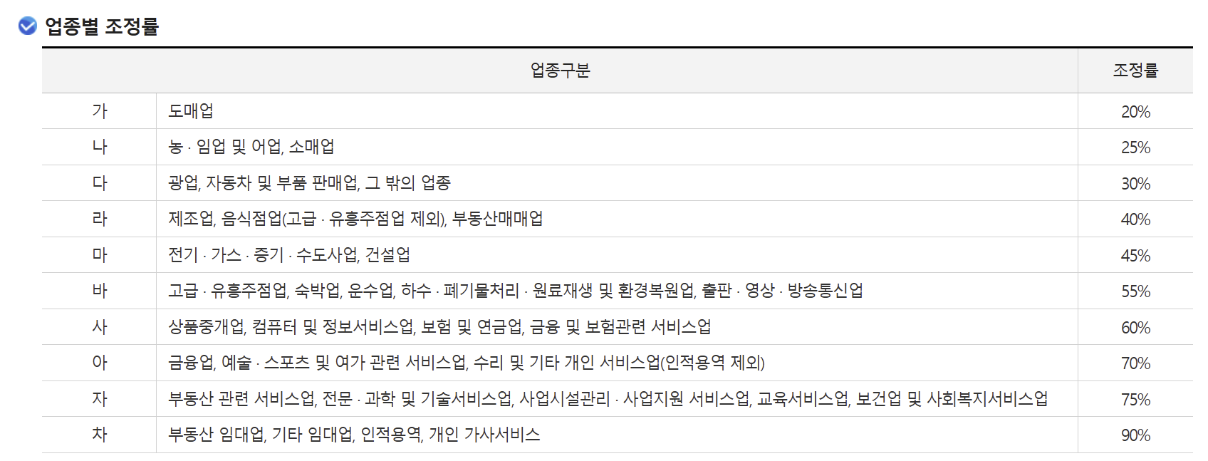 “소득금액”이 아닌 “업종별 조정률”으로 심사합니다